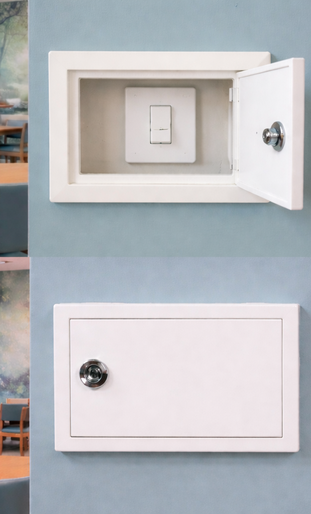 A secure, ligature-resistant enclosure designed to protect electrical fixtures such as light switches, controls, and other wall-mounted services in high-risk environments.