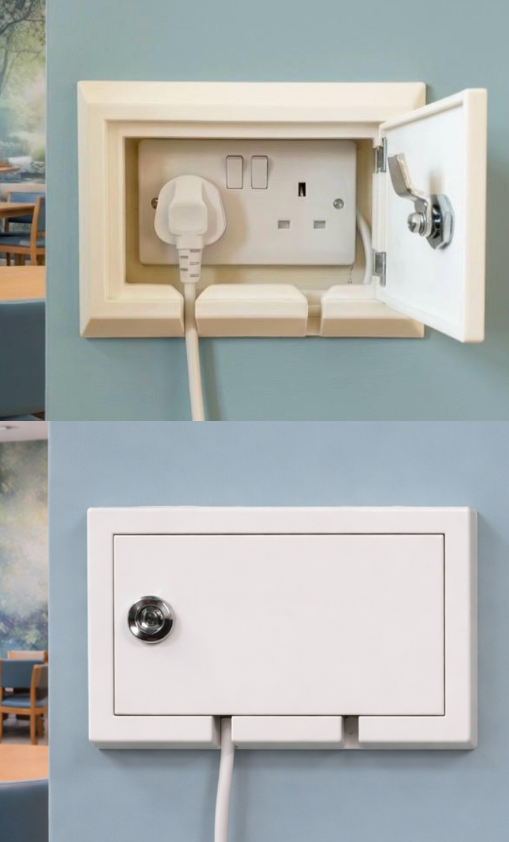 A secure, ligature-resistant enclosure designed to prevent unauthorised access to electrical sockets in high-risk environments.